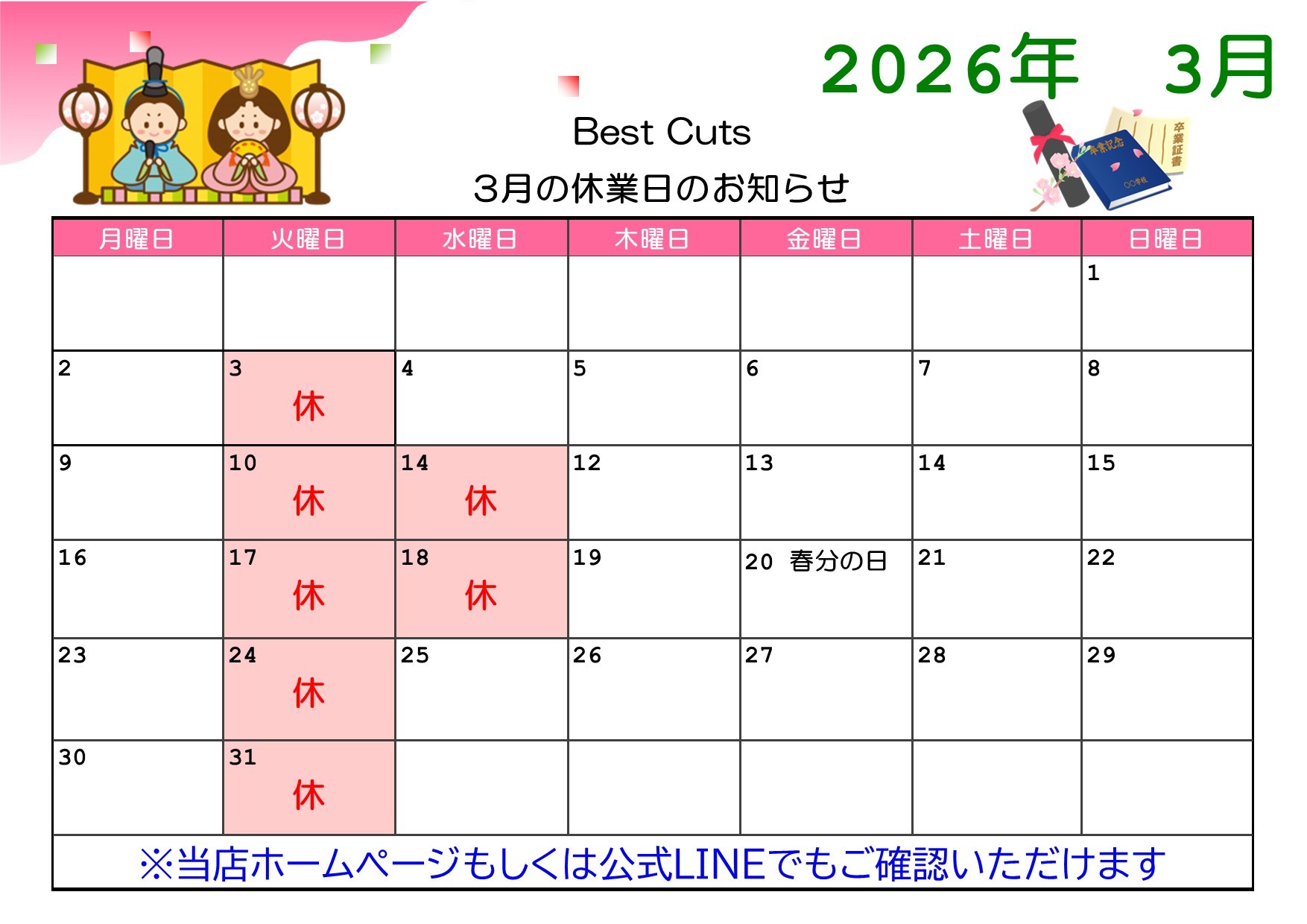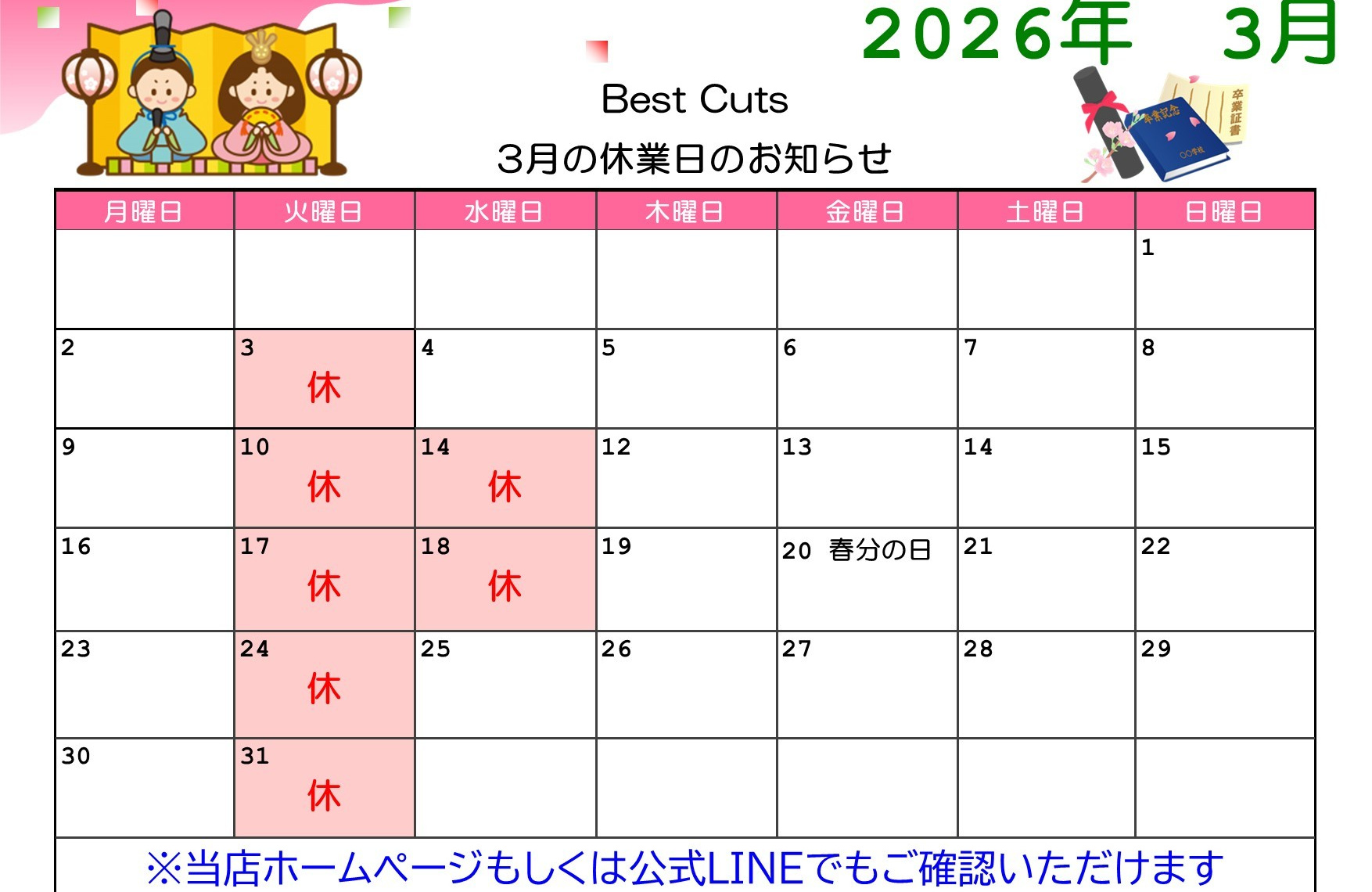 ※土・日・祝日は店頭での受付、Web予約のみになります。